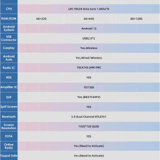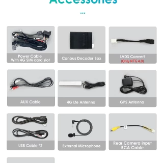 الميزات الخاصة : مكبر صوت/ميكروفون مدمج، وظيفة واي فاي، دعم التحكم من عجلة القيادة، دعم شبكة الجيل الثالث، دعم شبكة الجيل الرابع، دعم ناقل البيانات CAN، نظام تحديد المواقع العالمي (GPS) مدمج، هاتف محمول، مشغلات MP3، تحكم صوتي، معالج إشارة رقمية (DSP)، كاربلاي، أندرويد أوتو، مدخل الرجوع للخلف، شاشة مقسمة